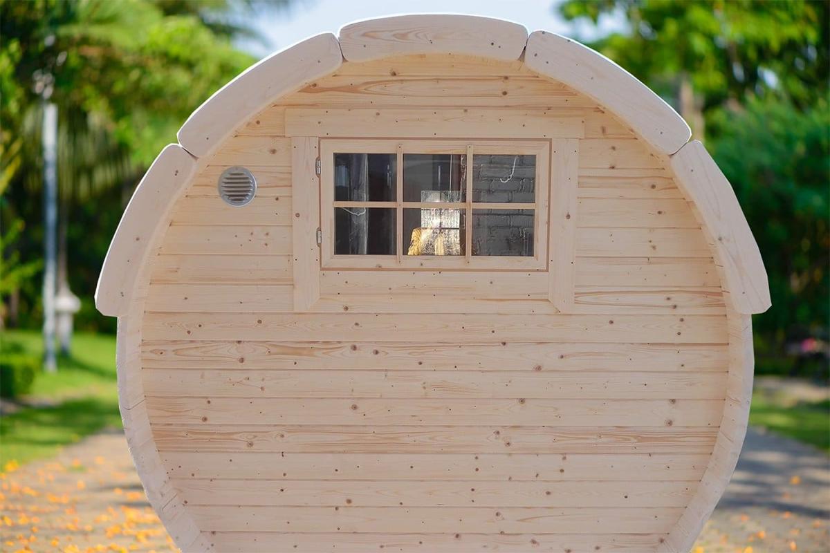 Ce logement en forme de tonneau est une alternative originale et chaleureuse, idéale pour créer une chambre, un bureau ou un hébergement locatif. Sa forme arrondie et son bois massif en font un espace cosy et lumineux, en contact direct avec la nature.